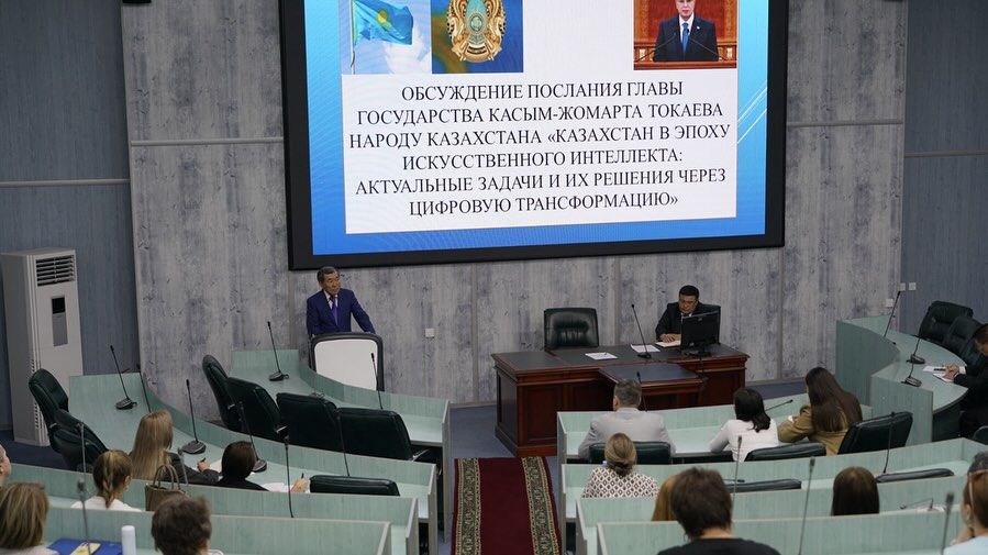 Қазтұтынуодағы Қарағанды университетінде Қазақстан Республикасы Президенті Қасым-Жомарт Тоқаевтың «Жасанды интеллект дәуіріндегі Қазақстан: өзекті міндеттер және оларды ауқымды цифрлық трансформация арқылы шешу жолдары» атты Жолдауын талқылауға арналған университет активінің жиналысы өтті.