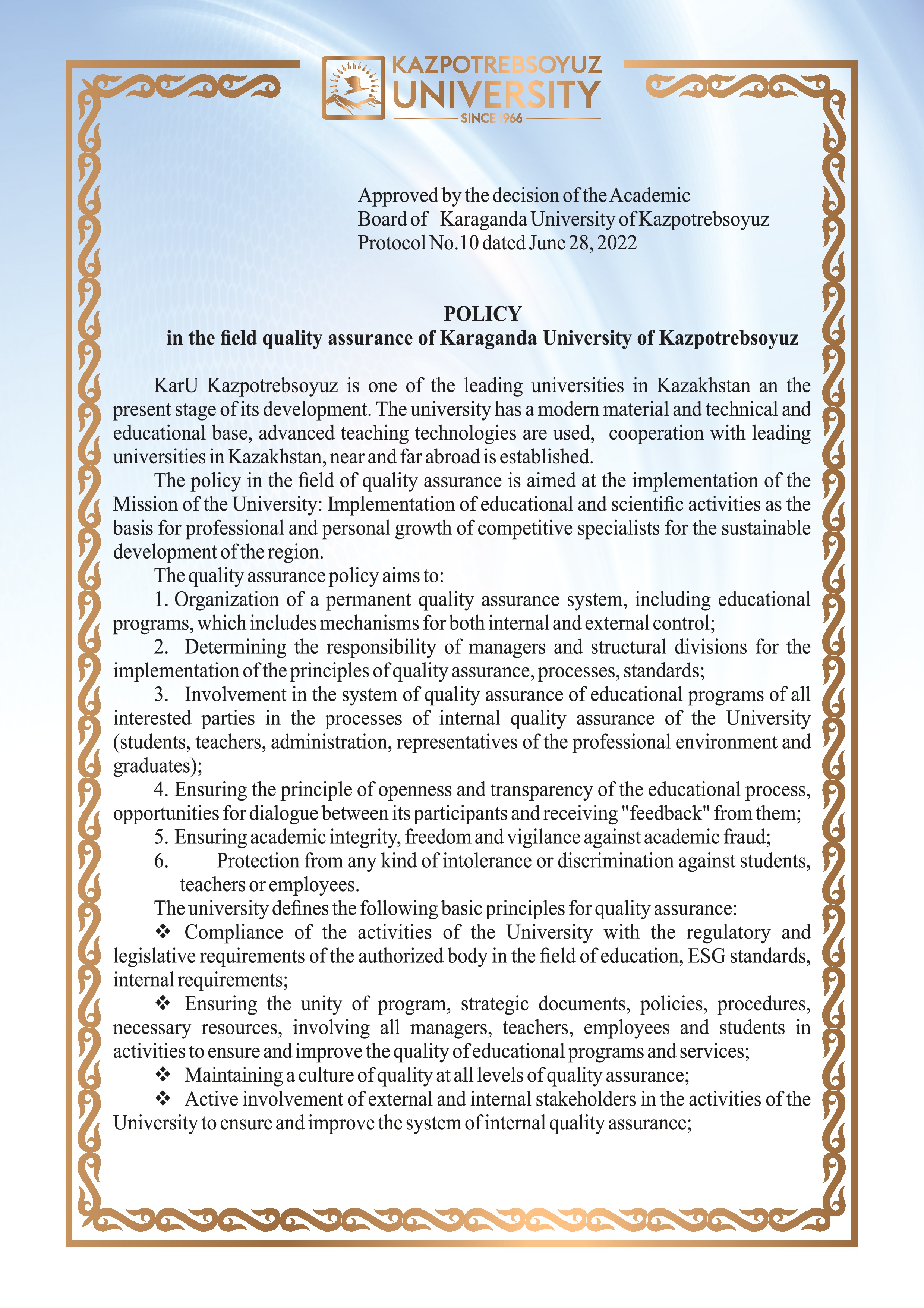 - Register of internal documents of the internal quality assurance system of KarU Kazpotrebsoyuz
