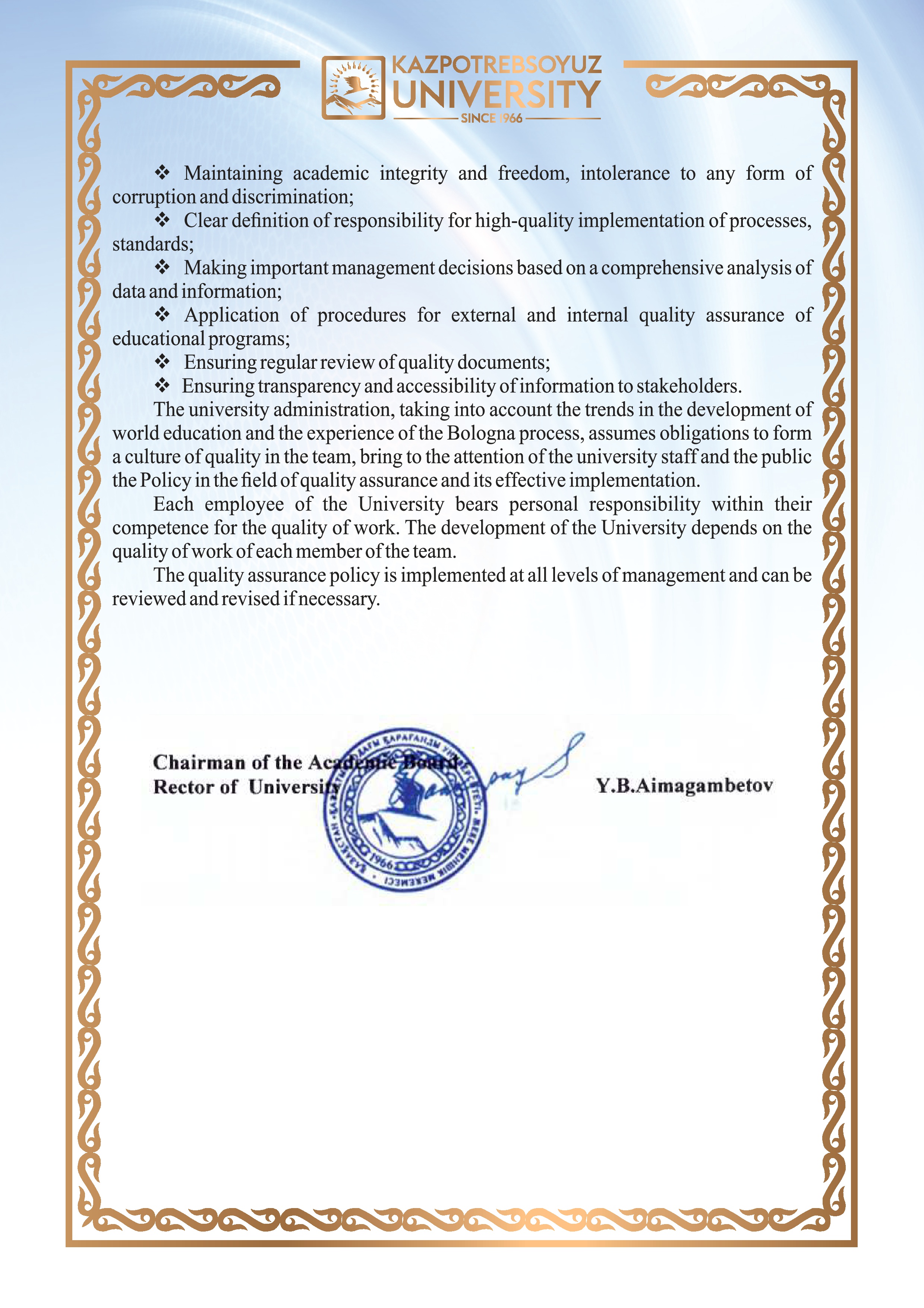 University missionThe mission of the Karaganda University of Kazpotrebsoyuz is the implementation of educational and scientific activities as the basis for the professional and personal growth of competitive specialists for the sustainable development of the region. |