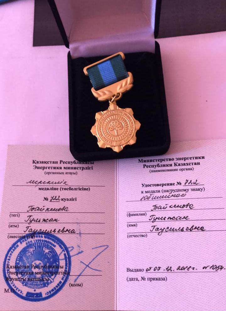 Congratulations to the head of the Department of Ecology and assessment, Professor Gulzhan Baikenova With the jubilee medal: "30th anniversary of ecology of the Republic of Kazakhstan" from the Ministry of Energy of Kazakhstan.