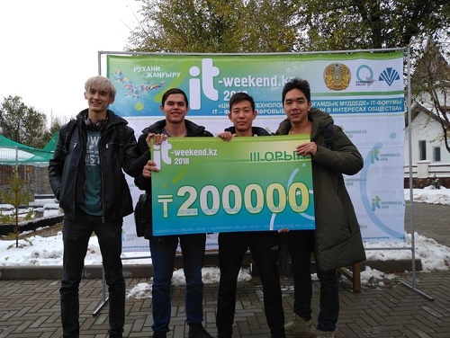 From october 16 to october 18 of this year. Our university hosted the IT-WEEKEND.KZ-2018 hackathon for students of colleges and universities of the Karaganda region to solve problems related to the implementation of the «Ruhani Janyru» program, in which students from the Department of Economic theory and state and local government, the group of the State SLG-31k: Zholdybai Altynai, Omarov Aybar, Kunanbayev Sayakhat. Scientific adviser: master, teacher Yertay Khuanbek.