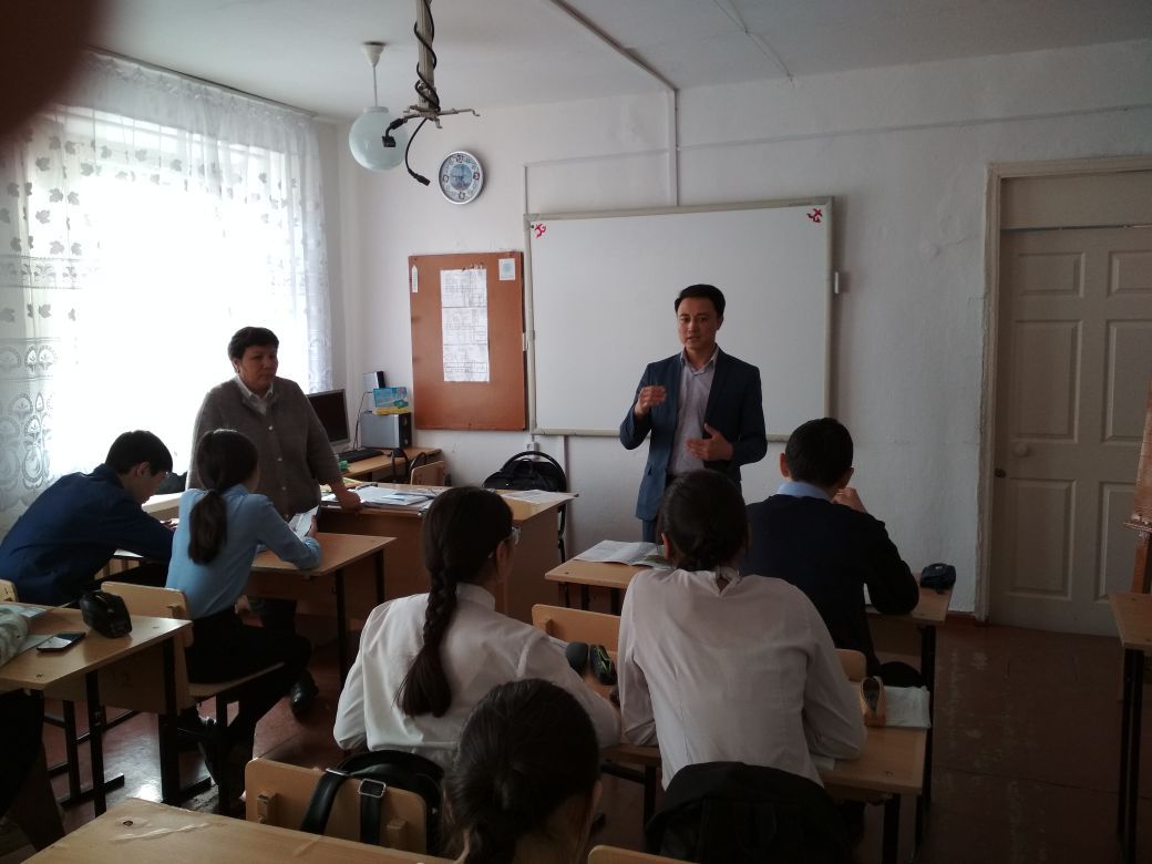 April 03, 2018, Department of “Social work and the Assembly of People of Kazakhstan” held an open curatorial hour on the theme «Rukhani zhangyru – bolashakka bastar zhol» with the participation of students majoring in “Basics of law and economics” and “Social work”. Guests of the event were pupils of school № 27 in Karaganda.
