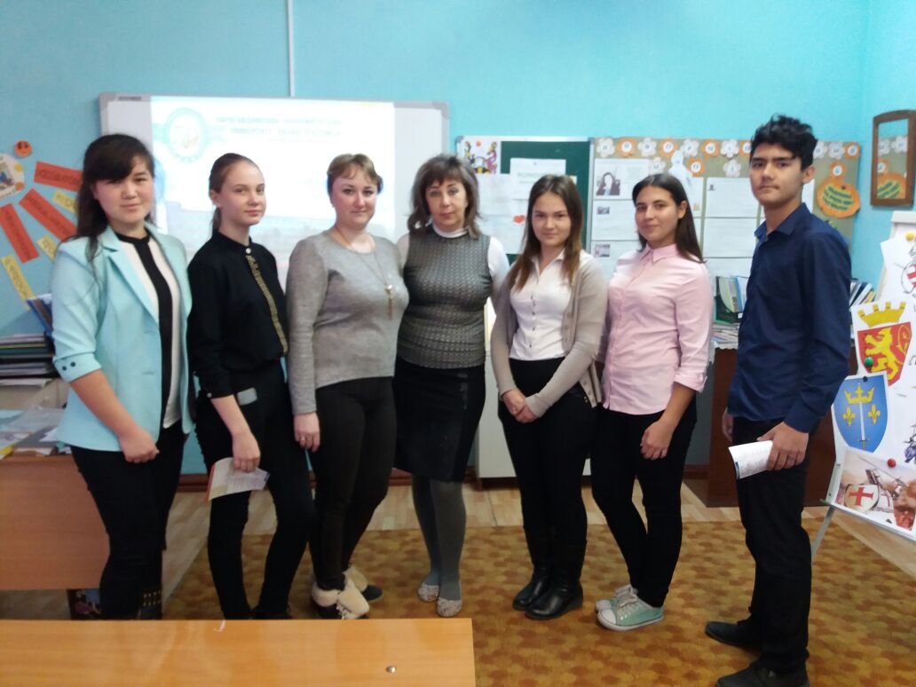 So, the teacher, the master of the department of IVS KEU Tsitsin A.S. in November, she conducted career guidance among students of schools in the city of Karazhal.