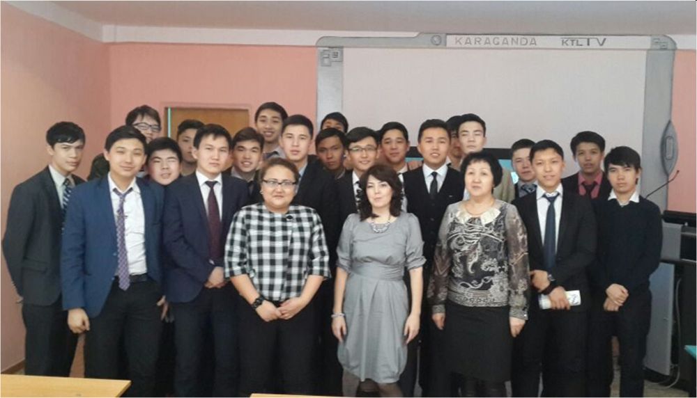 Head of the «Banking» department d.e.sc., professor Talimova Lyazat Azimovna, c.e.sc., docents Gusmanova Zhanara Ahmedzharovna, Saifullina Julia Magdatovna and senior teacher Yermekova Kulmariya Abdualievna visited MG «Kazakh - turkish lyceum – boarding school №1 of the Karaganda region department of education» in order to conduct «The day of open doors» meeting.