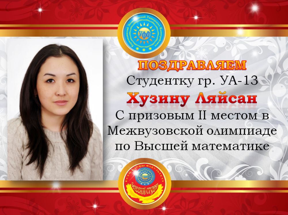 We congratulate the student of AA-13 group Khuzina Laysan with taking II place in the Interuniversity Olympiad on higher mathematics.