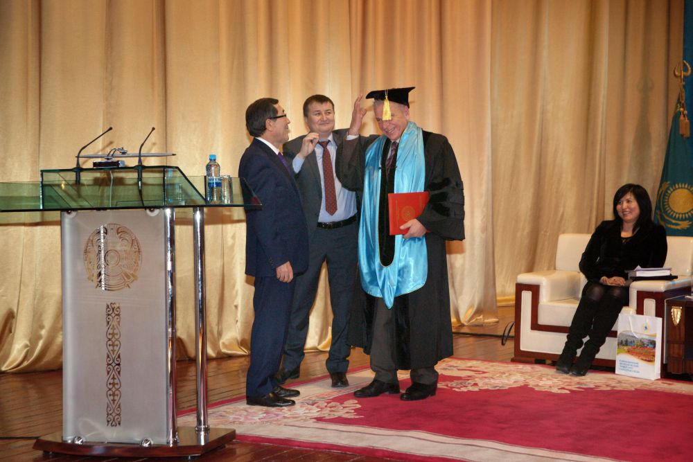 At the closing ceremony Academician of RAS Tatarkin Alexander Ivanovich was awarded the title of Honorary professor of the Karaganda economic university of Kazpotrebsoyuz.