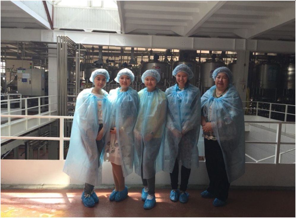 The relation of the theory with practice was evident. Within two weeks of attendance on the subject "Monitoring and evaluation of the quality of raw materials and food products" the students went on a trip to Karaganda milk factory "Natizhe", milling factory "Karakoz", where they learned the basics of technology and quality control of raw materials and goods, held organoleptic quality assessment, acquired the skills of physical and chemical methods of analysis.