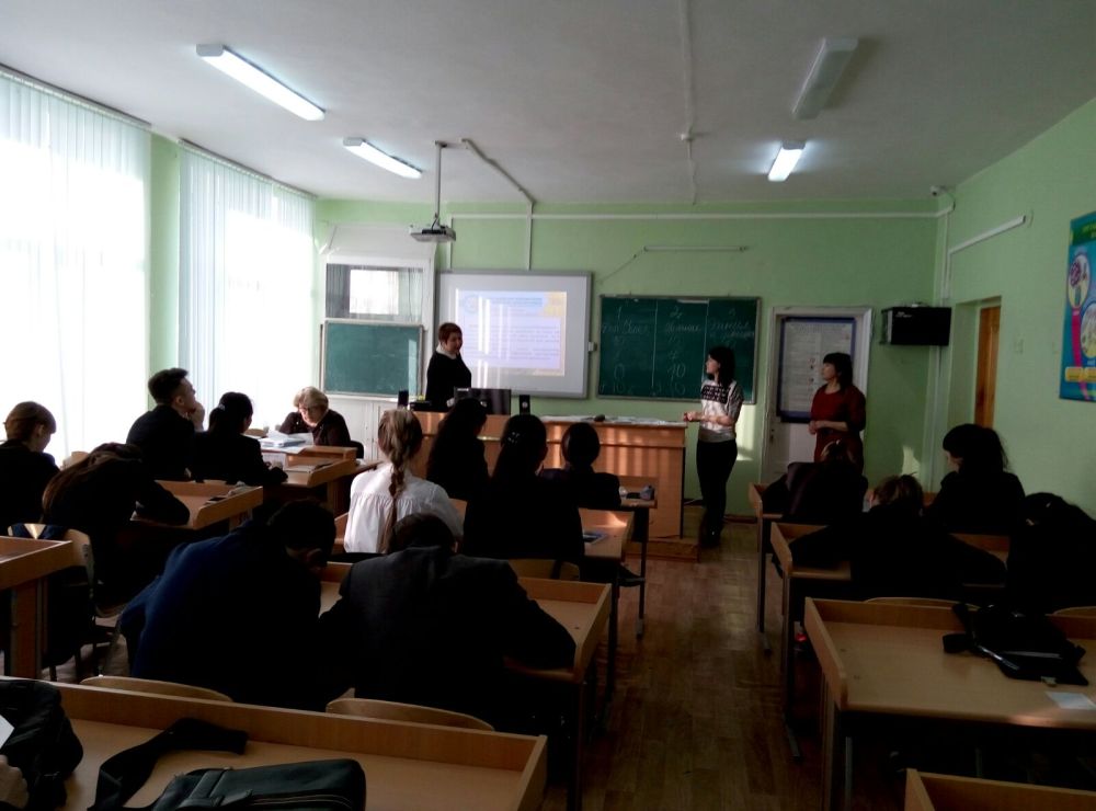 03.03.2016, within the framework of vocational guidance work senior lecturer in "Economics and Management" Ibitanovoy K.K. and Bukenovoy A.A. together with volunteers-students of Shevchenko Oksana and Marina Kim held an intellectual game among students of class 11 School №62.