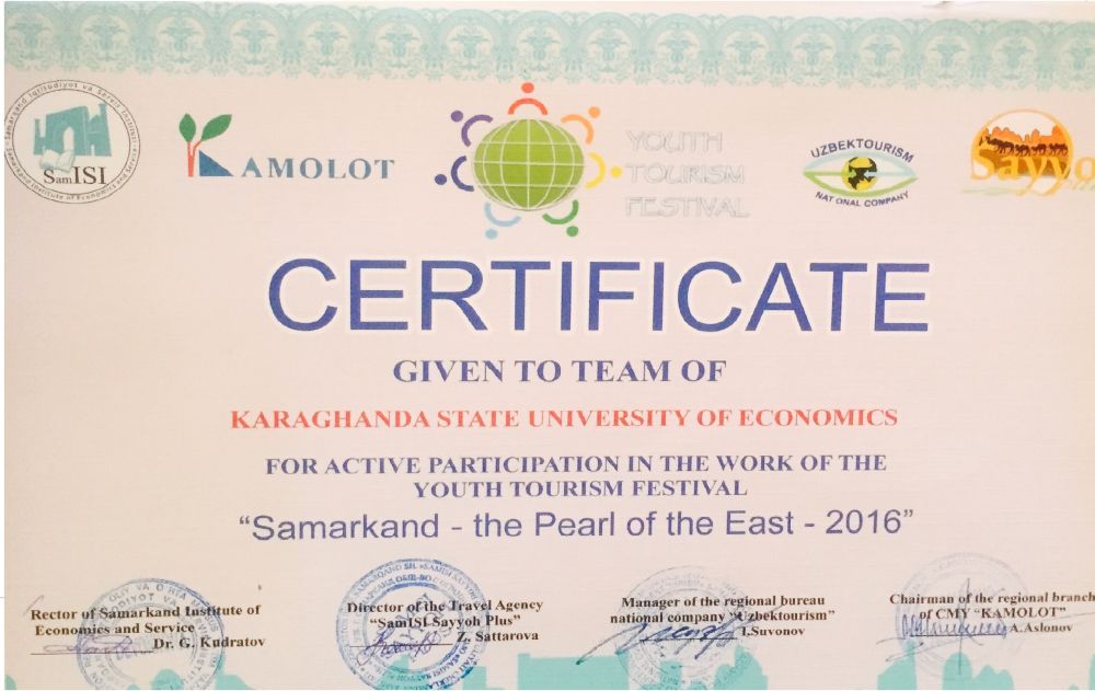 Thanks to the tourism professionals of the Samarkand Institute of Economics and Service «SamISISayyohPlus» program of practice was very rich, and we got a huge amount of necessary information and positive emotions that can apply in their future activities for the benefit of the development of tourist industry of Kazakhstan.