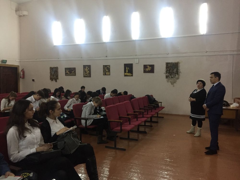 November 7, 2016 assistant professor of legal regulation of economic relations Dubrova Natalia Bogdanovna and teacher Sarbasov Begzat Atarkulovich the purpose of career guidance KSU visited secondary school №86 Karaganda.