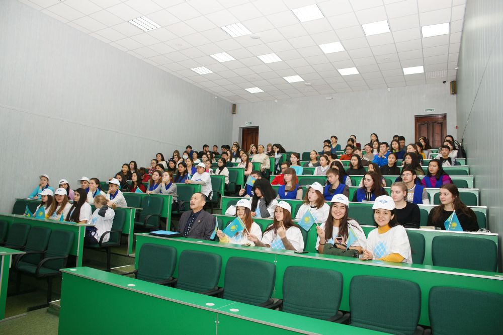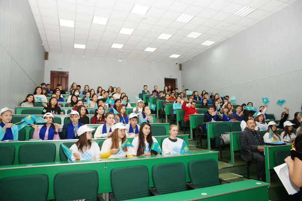 On November 22, 2016 at Karaganda Economic University was held patriotic action, dedicated to the celebration of the 25th anniversary of Independence of the Republic of Kazakhstan "State symbols – is the foundation of Independent Kazakhstan"! Promoting patriotism and citizenship of young people, encouraging the study, promotion of the state symbols of the Republic of Kazakhstan – are the objectives of this event. In the program of the patriotic action was included - video presentations about the history and significance of national symbols, interactive quiz, the poems about the Emblem, the Anthem and the Flag of our country and patriotic songs about the Motherland. The event ended with the national Anthem of the Republic of Kazakhstan.