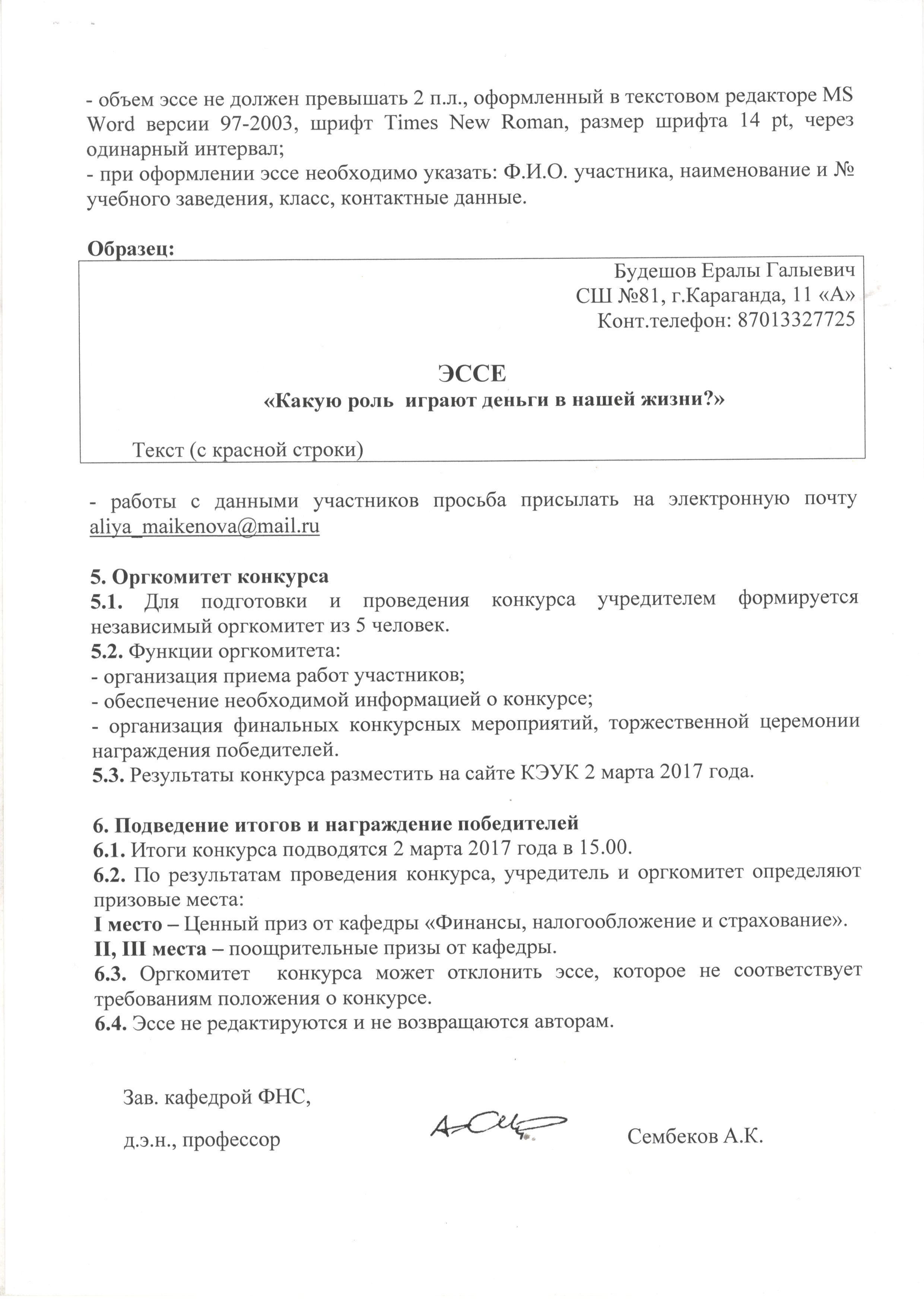 Department of "Finance, Insurance and Taxation" of the Karaganda Economic University informs about contest of creative works in the genre of essays among 10-11- grade school students of Karaganda region on the topic: "What is the role of money in our lives?".