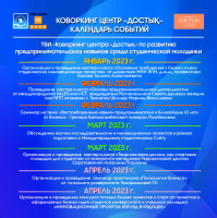 In order to systematically involve students, undergraduates, doctoral students in research activities through educational and organizational assistance to the creation and incubation of youth innovation projects, the formation of competencies that allow combining research, project and entrepreneurial activities, a calendar of events of the «Dostyk» Coworking Center» for the development of entrepreneurial skills among students for the 2nd semester has been developed 2022-2023 academic year. We will inform the exact dates of the events to those responsible for the research of the faculties of the university.