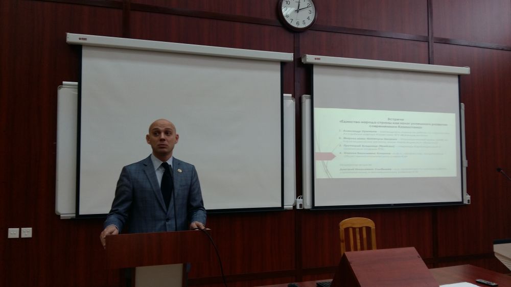 The moderator of the round table: Dmitriy Nikolaevich Ulybyshev – acting vice-rector for research, strategic and Innovative development KEU