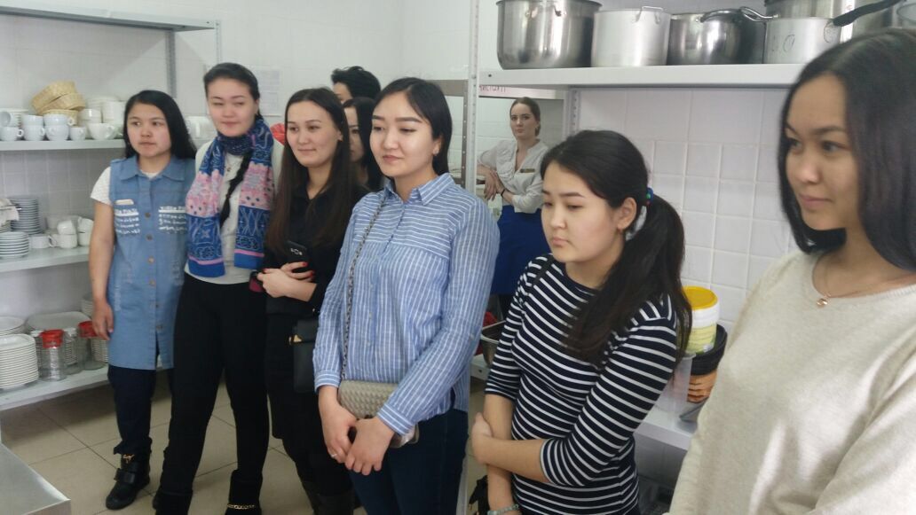 February 28 was held a visiting session with the RD-21k groups RD-23c \ k, DD-13c \ k and Tour-31k in the disciplines "Tourism infrastructure" on "base power" and distsiline "Culture of restaurant and hotel service" for the subject "Fundamentals of the provision of services in the hotel and restaurant business" based on the "Palermo" restaurant. During the retreat classes chef makes a pizza cooking techniques. On the work of the company and particularly the activities of the staff of the restaurant manager told Zhibak Zarina.