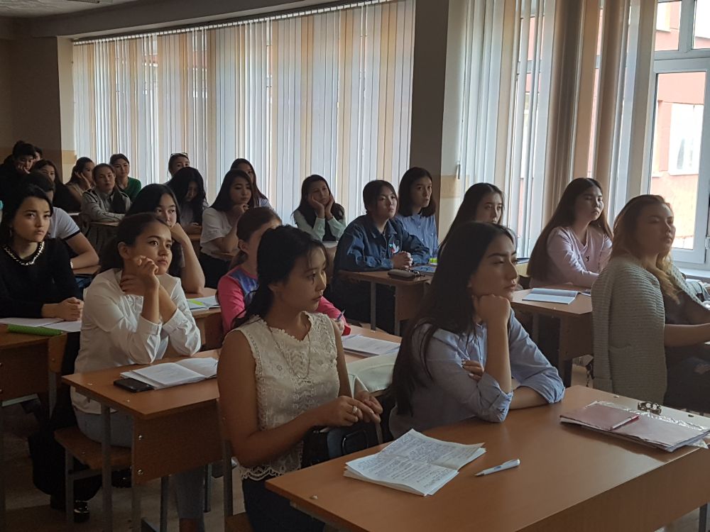 Teachers of the Department of SW and SPD: Doctor of History, Professor Abilov K. Zh., Ph.D., Associate Professor Abdakimova MK, Associate Professor Adambekova SM, PhD Doctor Manassova MM, masters Bekmukhambetova B.R., Tusupova G.N. in the period from September 11 to September 19, 2017 held a series of meetings and round tables with students of all specialties of the University to explain and discuss the provisions of the Program article of the President of the Republic of Kazakhstan N.A. Nazarbayev "Bolashakka bagdar: rukhani zhangyru".