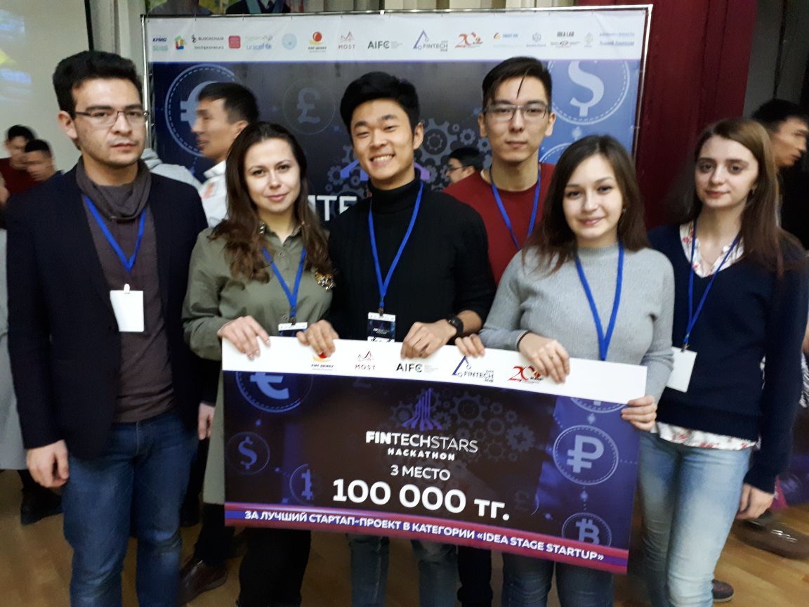 One of the teams of the university, the "Brainstorm" team won the third prize place following the results of the «Fintechstars» competition, received a certificate and a prize worth KZT 100 000 kzt. The winners were the team of our university: Khmeleva Ekaterina, Oborina Karina, Kushnarenko Olga - gr. F-32; Iristayev Nizamiddin - gr. Mn-12; Kim Constantine - gr. Mn-31; Tileubek Abylaikhan - гр. Yu-42. In addition, the founder and development director of the company "Wooppay" - Doroshenko A. agreed to work with the team for possible investment of their project (subject to bringing the business idea to the real product).