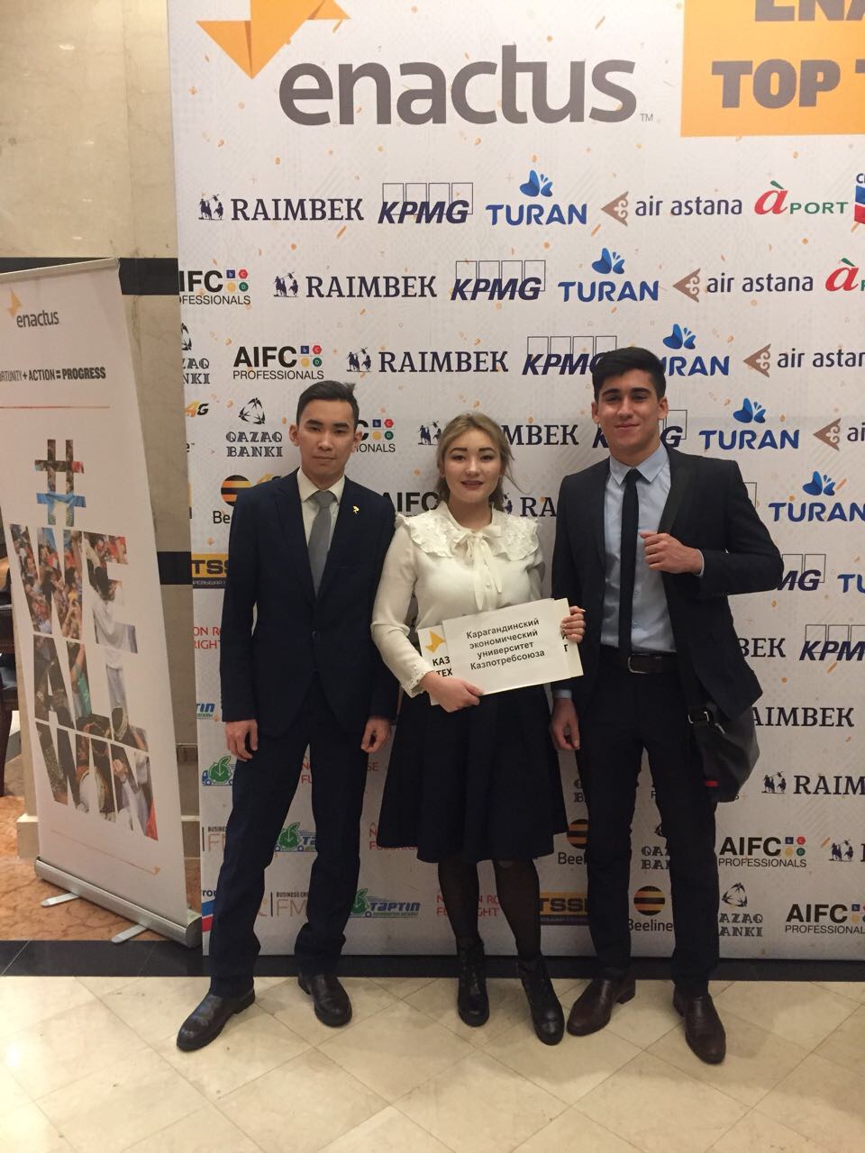 Business-forum "TOP TO FUTURE TOP FORUM" was held in Almaty, which was attended by students of the team "Enactus-KEU" Statsyuk Anastasia, Makatov Serikjan, Khudoiev Amin, who submitted the application for participation in the "National Cup of student entrepreneurship, start-UP and innovation" in the framework of the international program "Enactus Kazakhstan".
