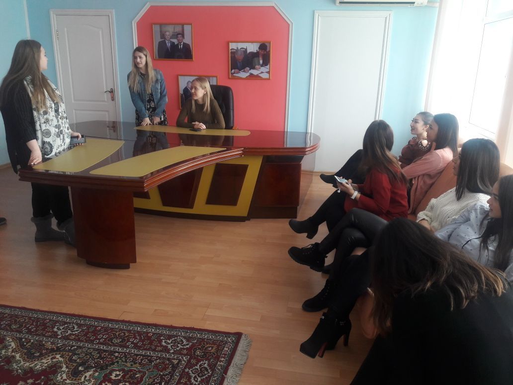 In order to familiarize students of KSTU with the educational environment of KEUK, the teacher of the Department of Marketing and Logistics, Tomashinova Aigerim Yerkenovna, initiated an excursion around the university. Students of the Polytechnic University were pleasantly surprised by the modern and developed infrastructure of the university, a rich library, ubiquitous access to Internet resources and Wi-Fi-zones. For a short period of time in KEUK our guests noted the friendly atmosphere of the university and the professionalism of the teachers.