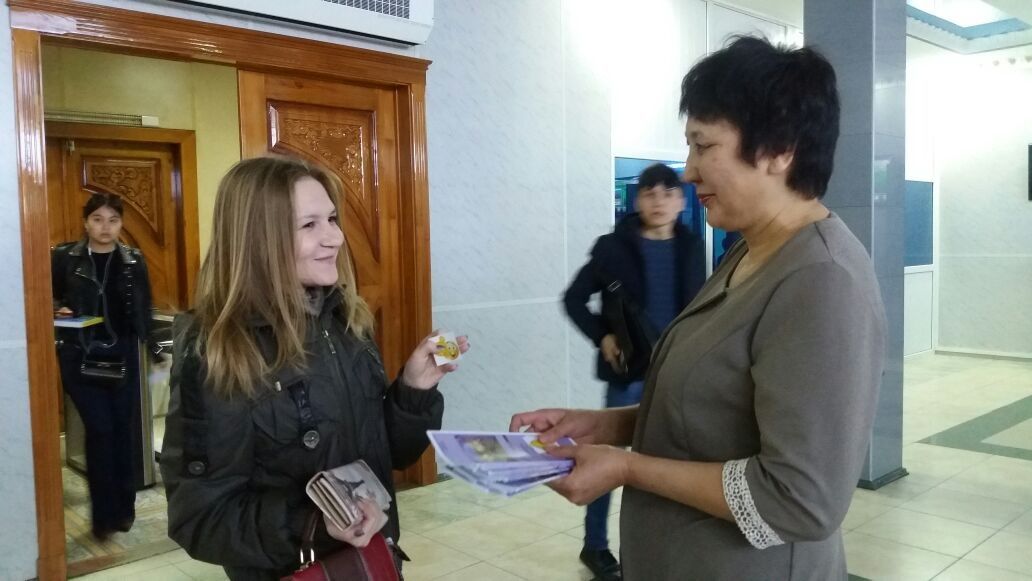 Library staff at the entrance to the university held a cheerful blitz poll – “Who knows the way to the library?”. Who knows - gets a smiley, and who does not know - a guide with the address of the library and contact information.