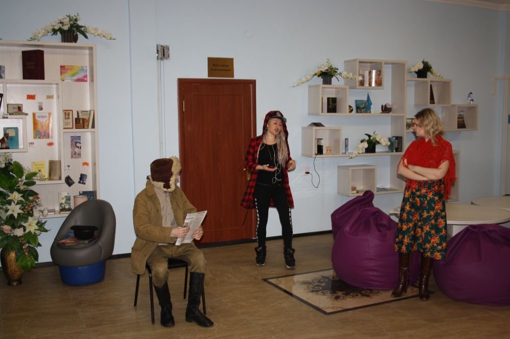 Further in the lobby of the library students were treated to hot tea and coffee. With a salutatory word, the director of the library G.N. Jabayeva addressed the audience. Then the participants of the festival watched the scene “Eh, youth ...”, prepared by the student's theater “Inspiration”.