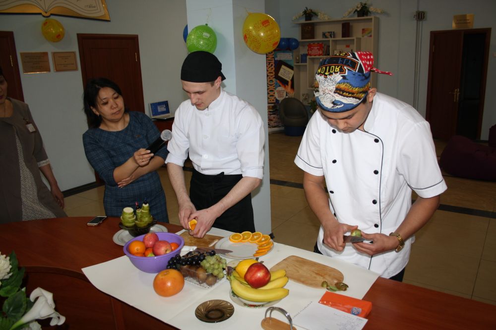 The final chord of the festival was a master class from students of the Food Production group Djankeev Tolegen and Pruchaev Bogdan for cutting fruits and folding napkins.