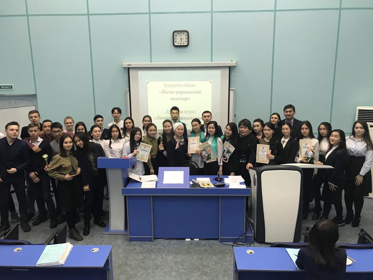 On March 15, 2019, the Department of Finance of the Karaganda Economic University of Kazpotrebsoyuz organized and conducted an intellectual game “Personal Financial Plan” among students of 10-11th grades of Karaganda and regional schools, and the results of the distance creative contest in the essay genre were announced on the topic: “Digital Finance: Today and Tomorrow”, according to the results of which students were awarded diplomas and valuable prizes. The winners of the game "Personal Financial Plan" were presented with cups, sweet gifts.