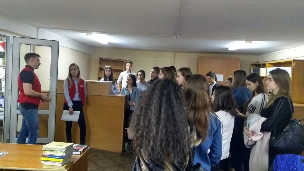 According with the «Marketing and logistics», «Tourism and restaurant business» staff of library conducted meeting among pupils from the SGS№52, SGS №62