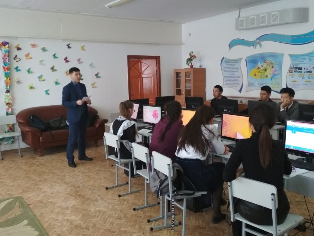 April 19, 2018 master of the Department "Banking management and financial markets" Issanov Arman Abay district, conducted a career guidance for school leavers.