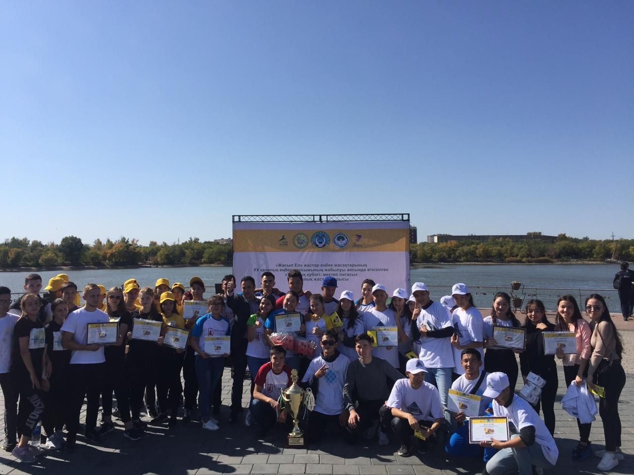 The team of students «Eco-Life»of the Department «Ecology and assessment» took part in the city youth tournament «Student League: Cup of purity», which was held within the closing XV city labor season of youth labor groups «Zhasyl El».