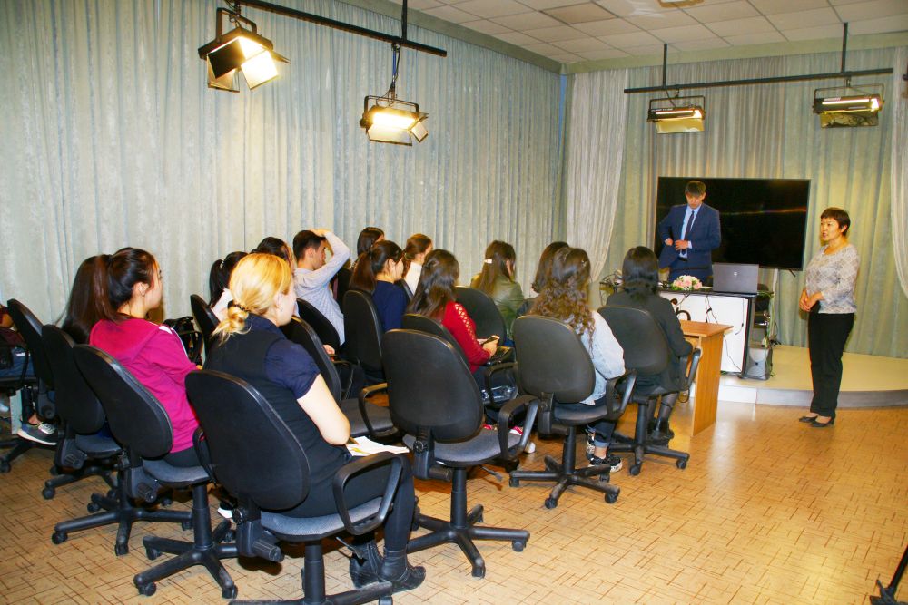 The KEUK Training Television Center hosted a “platinum” lecture by the chief specialist of the Department for Organization of Work with Disabled Persons and Veterans of the State Institution “Coordination of Employment and Social Programs of the Karaganda Region” Nuksuyev E.E on the topic “Providing the disabled with technical rehabilitation equipment” for students of the educational program "Social Work".