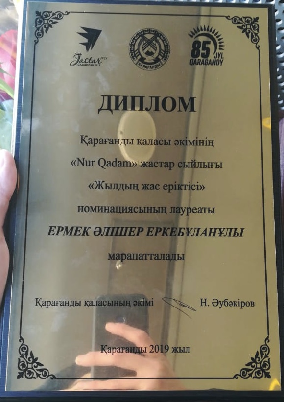 The Youth Prize of the akim of Karaganda city “Nur Qadam” is the additional measure of supporting for young citizens with high rates in the professional sphere and in public activities.