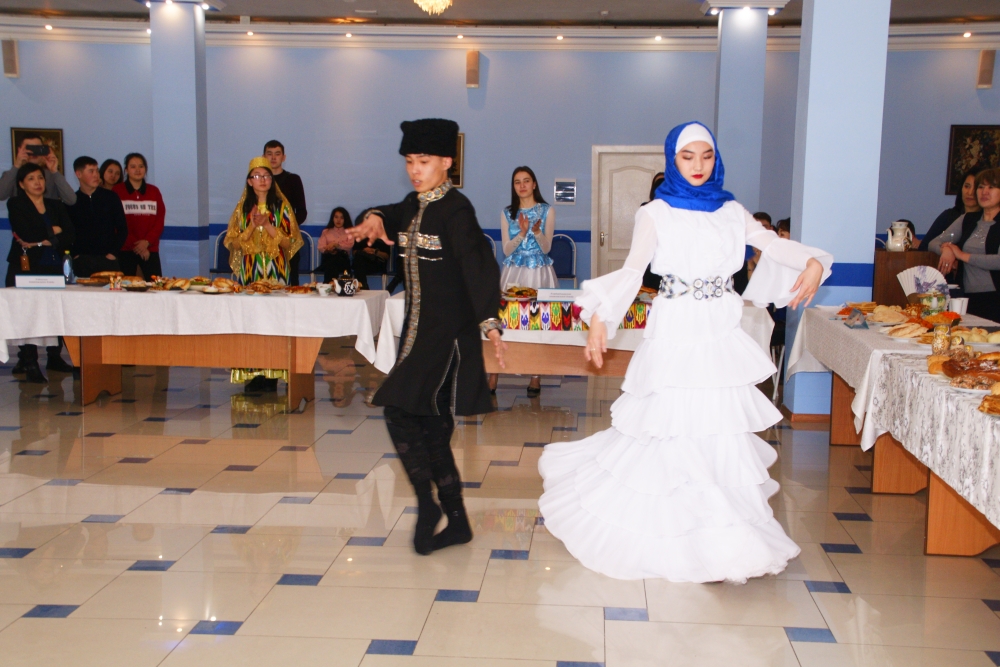 Russian, Korean, Tatar, German, Uzbek and Azerbaijani cultures were presented at the Festival, where students presented national dishes, decorative and applied art products, presented national costumes and prepared creative performances. The competition program was evaluated by the jury, which distributed the following categories:" Best national dish " was won by Russian cuisine," Best national costume "- German national costume, "Best creative number" - Korean folk dance, "Best presentation of the nation" - Uzbek nation.