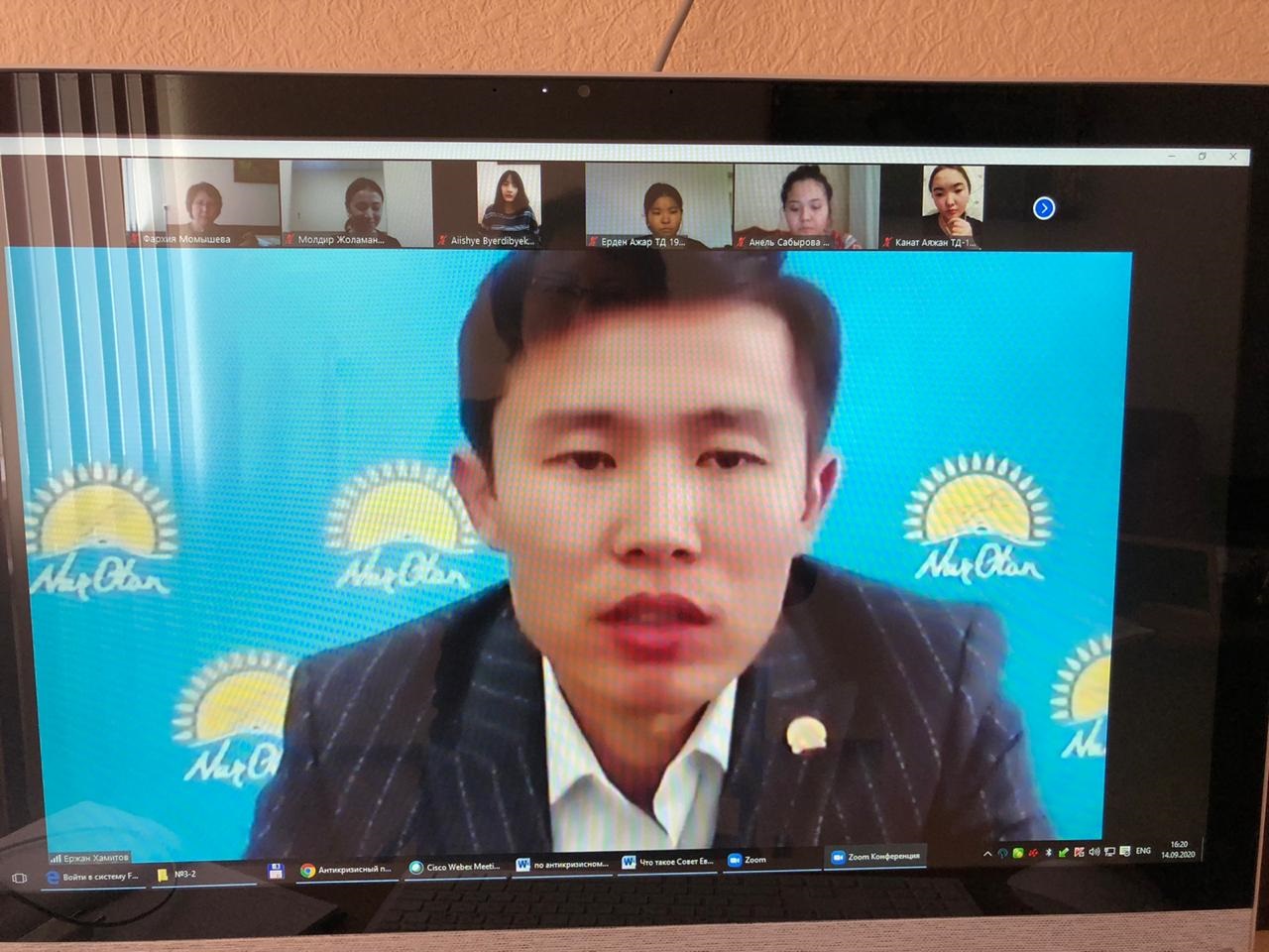 A business and interesting dialogue took place between the students and the Chairman of the Karaganda regional branch of the youth wing «Zhas Otan» Ye.B. Khamitov. In a conversation with students, Yerzhan Bolatovich spoke about the President's program «Zhastar Otanha», about the participation of students in primaries, the volunteer movement in a pandemic, cooperation with our university and answered questions from students.