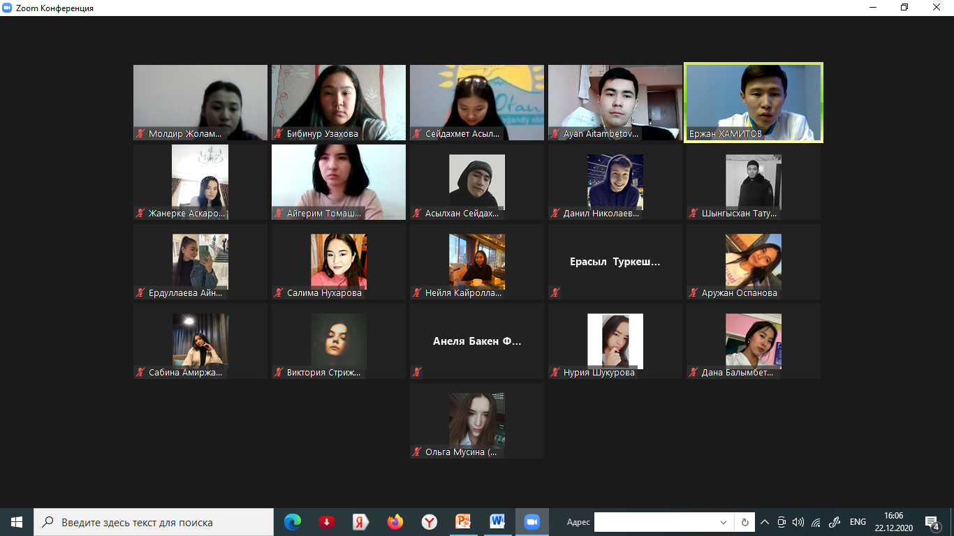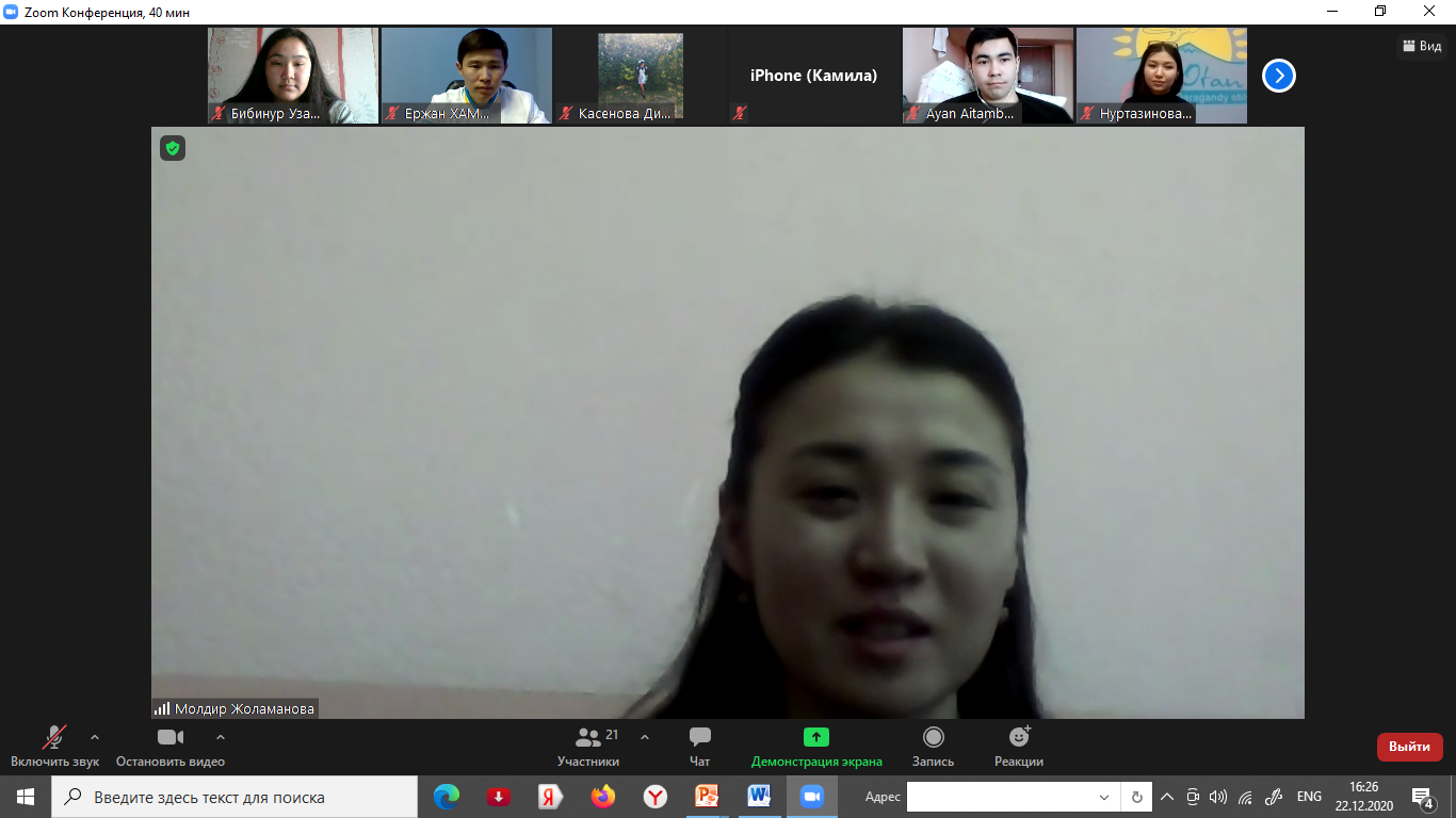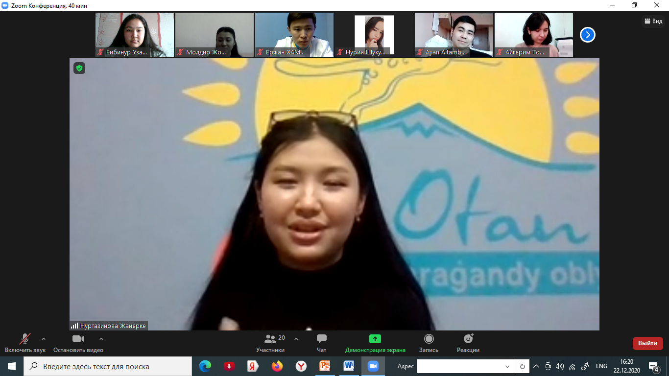 The deans of FBLT, FEME, FFLDT held an online meeting with the Chairman of the Karaganda regional branch of the youth wing "Zhas Otan" Khamitov Yerzhan and members of the youth wing "Zhas Otan" KEUK. The meeting summed up the results of the events, which were attended by members of the youth wing "Zhas Otan". Our students Nurtazinova Zhanerke and Usacheva have Bibliobibuli an overview of the activities organized by the youth wing "Zhas Otan".