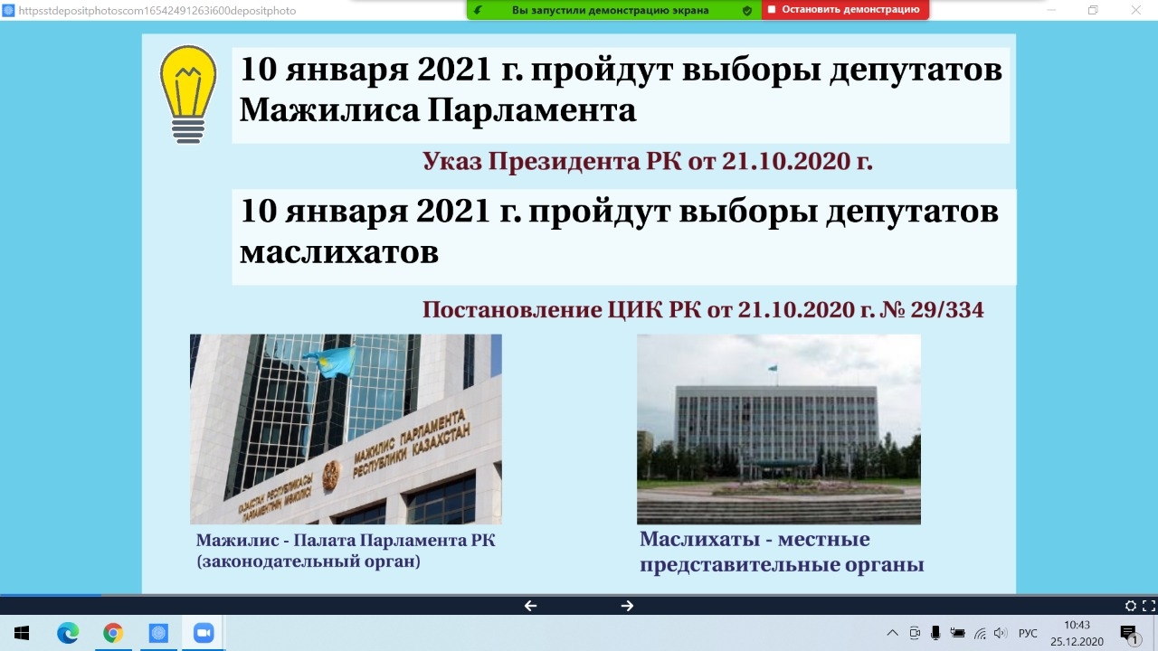 In anticipation of the upcoming elections of deputies of the Mazhilis of Parliament and maslikhats of the Department "Legal regulation of economic relations" and "Compulsory and special disciplines of the faculty of Business, law and technology" in the period from 30 November to 25 December 2020 held a series of webinars on the topic of "Electoral law and electoral system of the Republic of Kazakhstan" for students of all educational programs of the University.