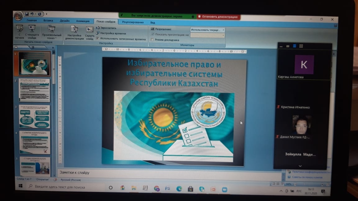 As part of the webinars, the main provisions of Kazakhstan's legislation on the organization and conduct of elections were explained to the student community. Students are familiar with the constitutional guarantees of the right to vote, enshrined in article 33 of the Constitution of the Republic of Kazakhstan.