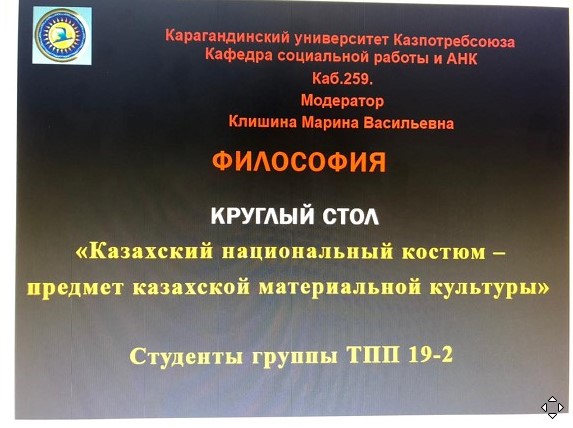 On February 10, 2021, the department "Social work and APK" held a round table "Kazakh national costume - the subject of Kazakh material culture",dedicated to the 30th anniversary of sovereign Kazakhstan.