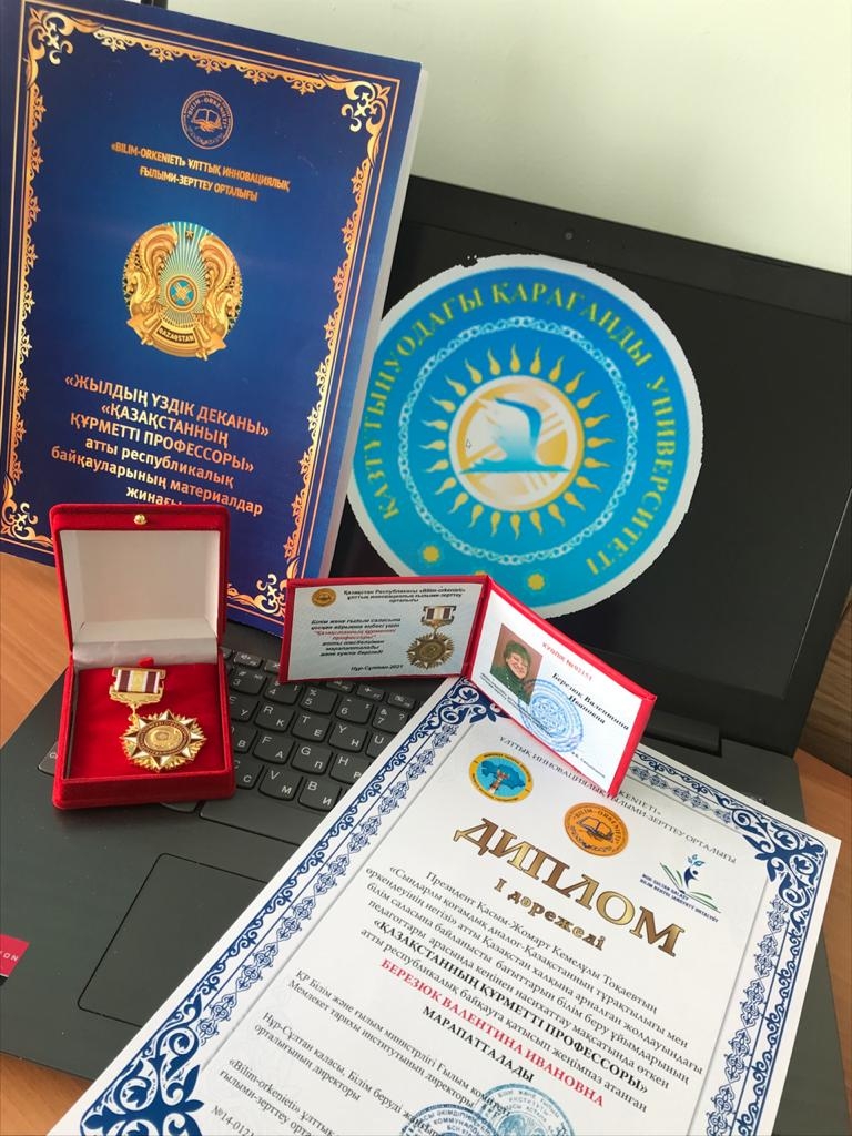 The owner of this title was Valentina Ivanovna Berezyuk, Doctor of Economics, Professor of the Department of Accounting and Auditing, which won in the republican competition for the title of Honorary Professor of Kazakhstan, held by the Ministry of Education and Science of the Republic of Kazakhstan and the National Innovative Research center "Bilim Urkenieti".