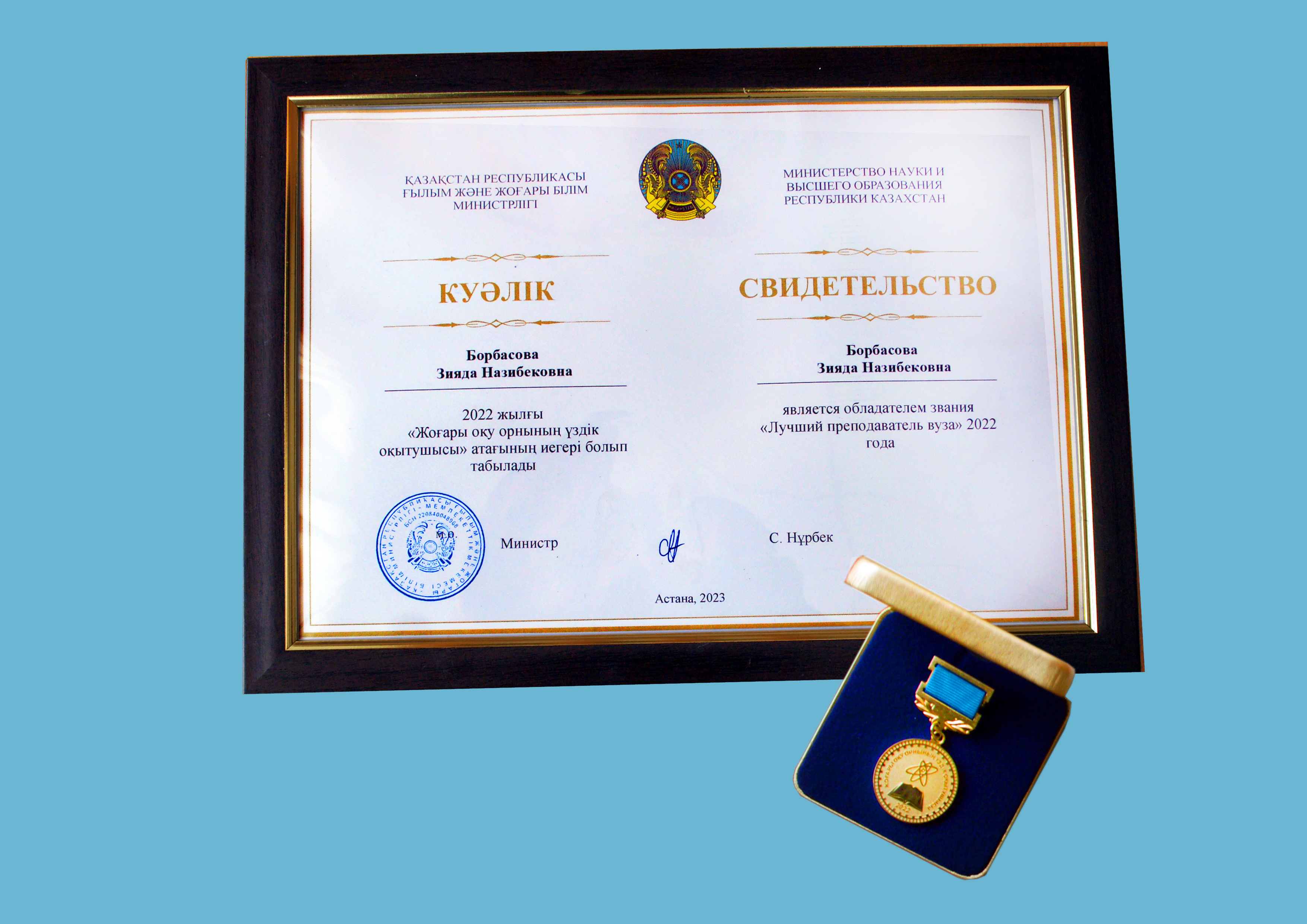 The entire staff of the University cordially congratulates you on this victory! This award is a well–deserved recognition of your tireless and painstaking work, your contribution to the development of Kazakhstan's education.