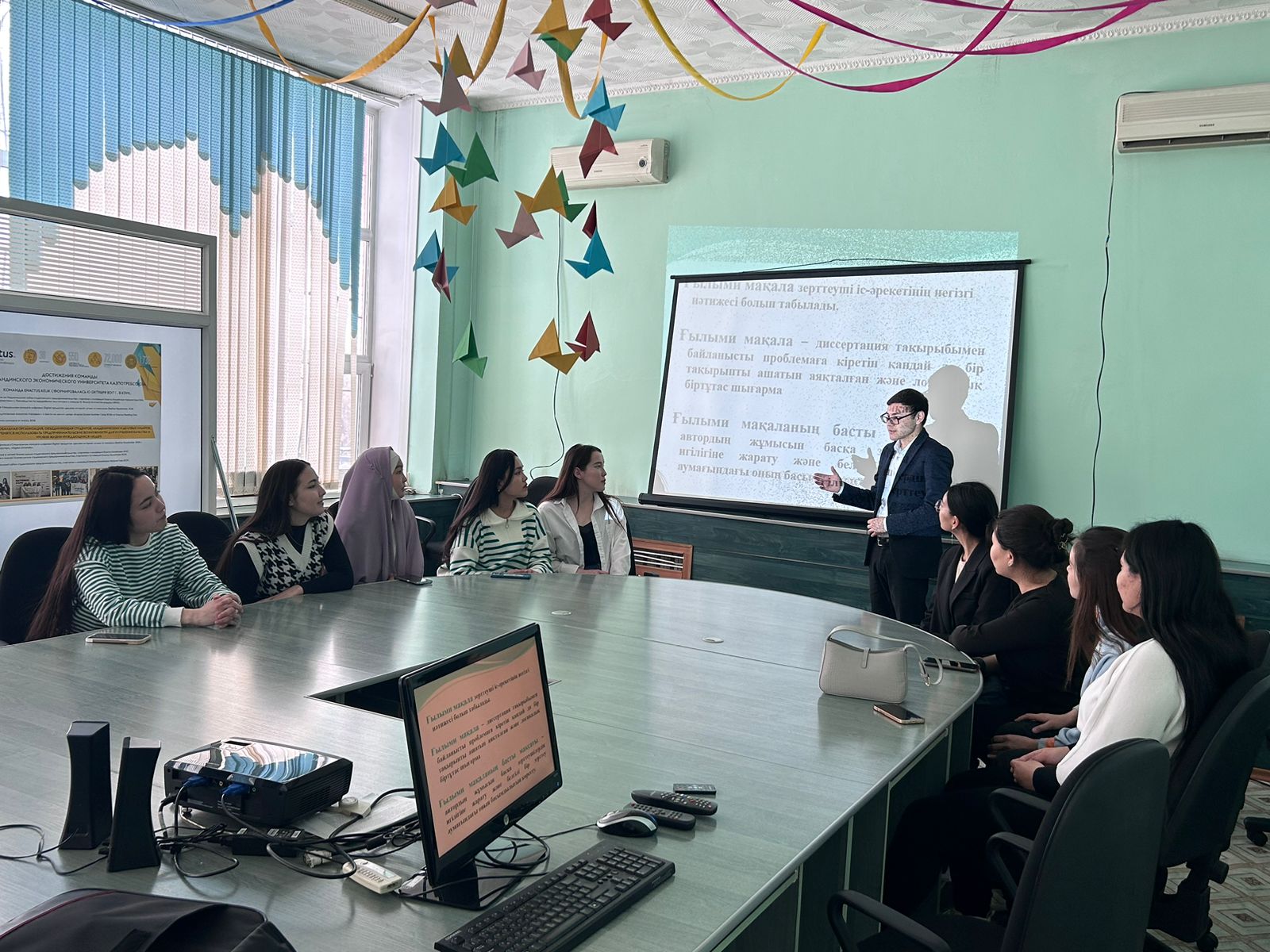 Master's degree, lecturer of the Department of Psychology, Pedagogy and Social Work, member of the Council of Young Scientists and Students Isaev Aituar Aitymovich presented the Methodology of work on the section of the scientific article, the criteria for the success of its writing. He also introduced the students to the rules of building a scientific publication and the main features of the scientific style.