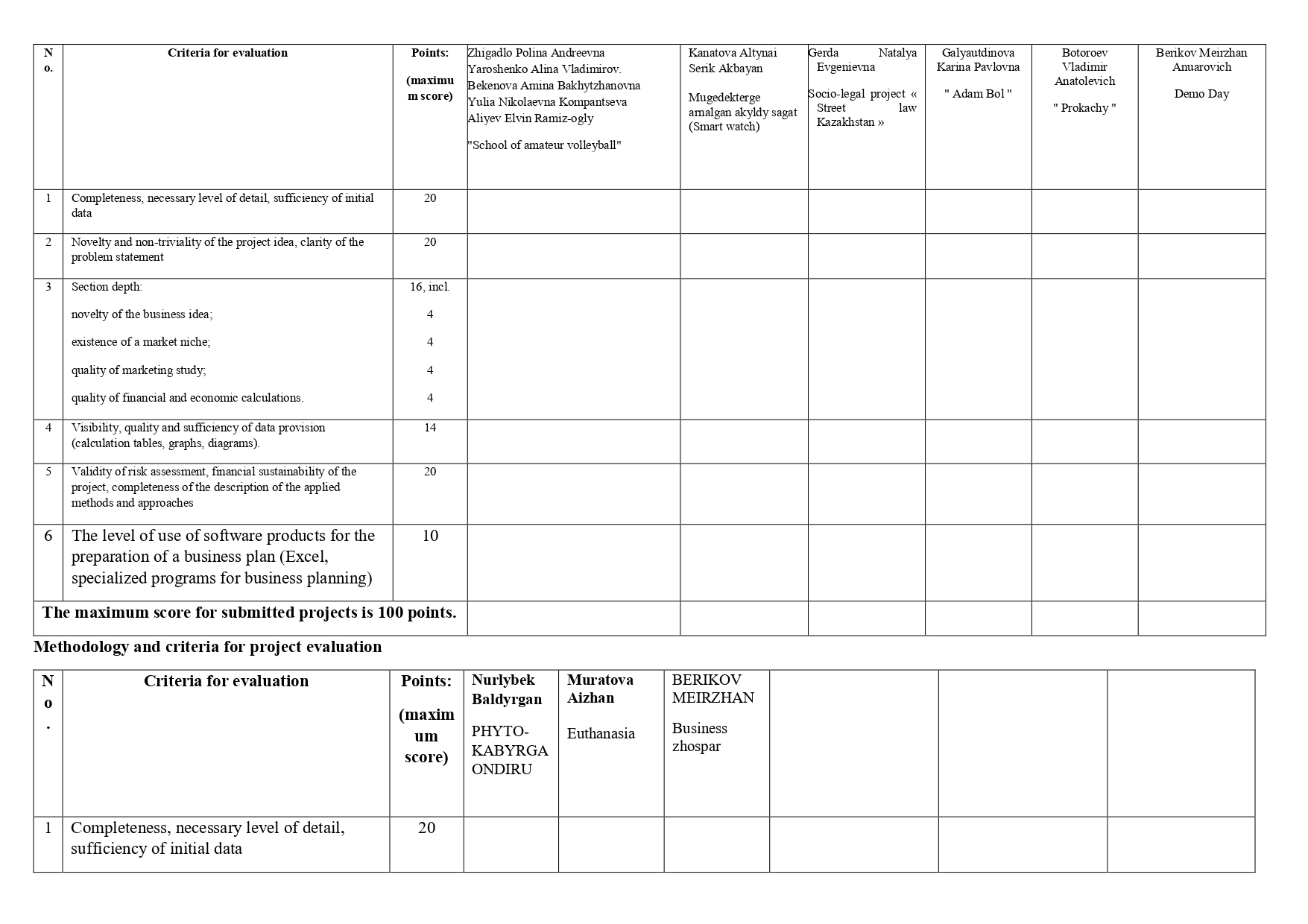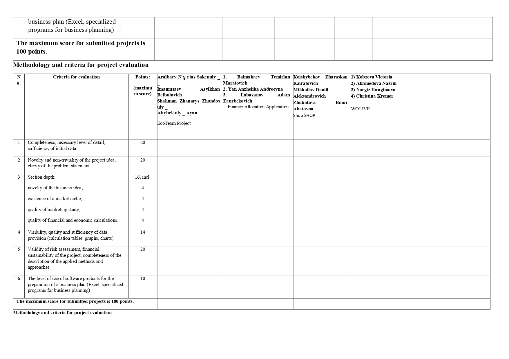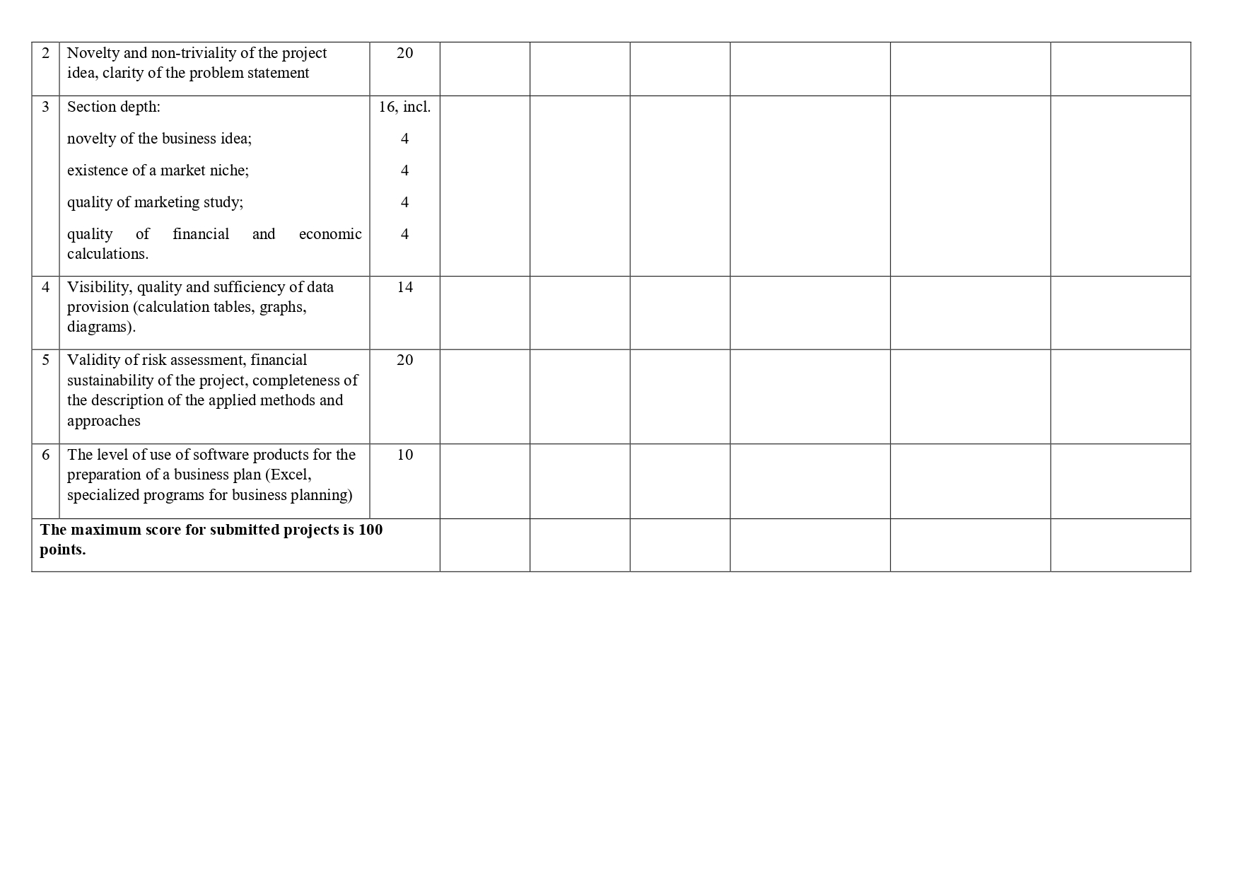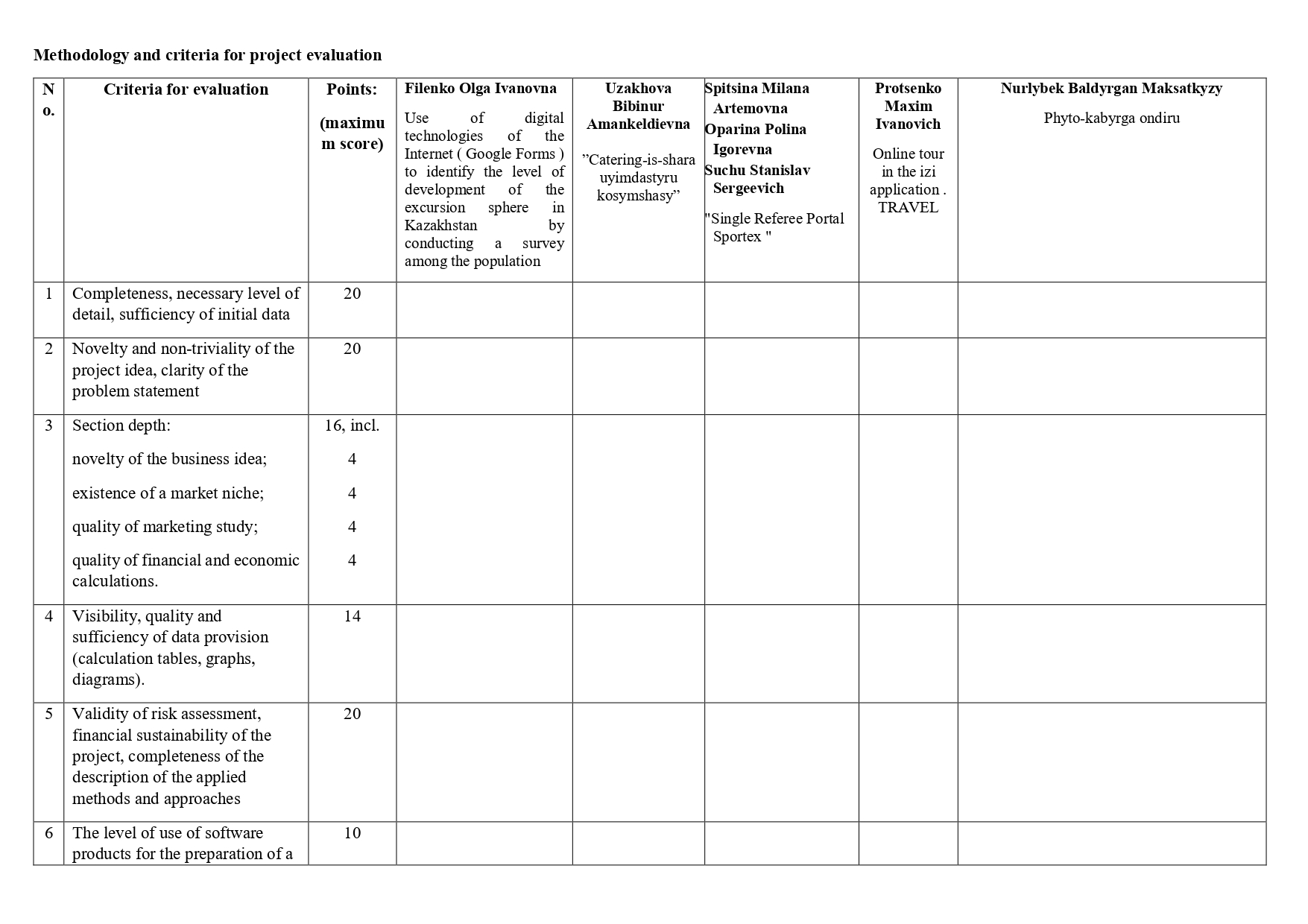 Methodology and criteria for project evaluation