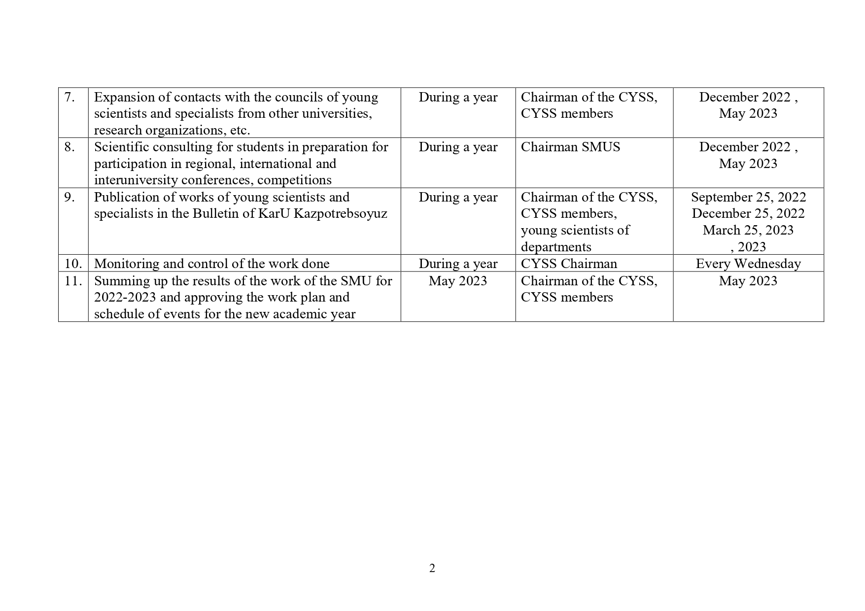 - Plan of SRW in 2022-2023