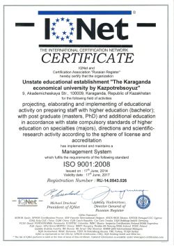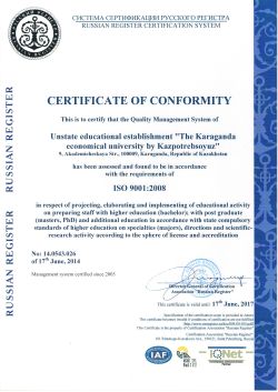 Years 1994-1998 the Karaganda Economic University of Kazpotrebsoyuz, specialty "Economics and Management"