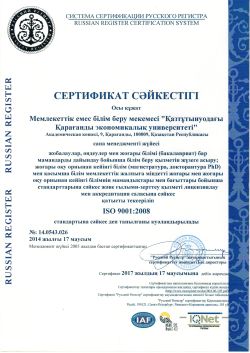 Years 2001-2005 Karaganda State University named after E.A.Buketov, Faculty of mathematics, specialty 541530 - "Information systems in business"