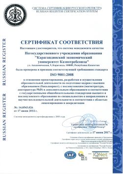 2013 master of USCO St. Petersburg National Research University of Information Technologies, Mechanics and Optics, Karaganda Economic University of Kazpotrebsoyuz