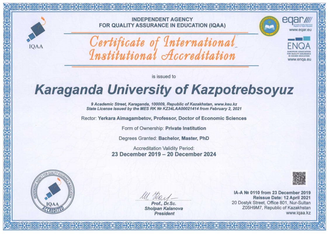 | 44 | 8D04101 Economics | IAQAE | SA-A № 0237/4 | 30.04.2022 – 29.04.2027 |