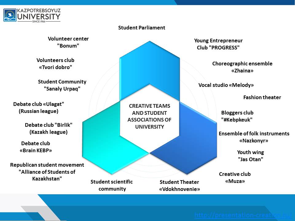 https://www.instagram.com/spkaruk CHOREOGRAPHIC ENSEMBLE "ZHAINA" If you can't live without dancing or have always dreamed of starting dancing, then this is where you are! You are waiting for intensive training, bright performances, the basis of the repertoire of which includes the performance of dances from different peoples of the world, as well as performances at major university events, participation in a wide variety of competitions! The choreographic ensemble "Zhaina" has been proving its leadership at dance festivals (competitions) of various scales for more than 20 years: 9-time winners of the Grand Prix of International competitions in Belarus, Russia, Egypt, Kazakhstan. Head: Smagulova Aziza Oralkhanovna Contact phone number: +7 702 245 4245 Address: Karaganda, Akademicheskaya str. 9, office 322 VOCAL STUDIO «MELODY» VS «Melody» is a community of creative people who are in love with music and are ready to share this love with the world. The doors of the vocal studio are always open to musicians of any kind, including both instrumentalists and vocalists. If you are already an experienced performer or are just getting ready to start your career - the organizers are looking forward to meeting you at the auditions, which traditionally take place in September! And those who prefer to be in the auditorium, we are happy to invite to all university events! Head: Shalkymaev Asset Zhetiruovich Contact phone number: +7 701 520 7874 Address: Karaganda, Akademicheskaya str. 9, Palace of culture of students FASHION THEATER Welcome to the world of fashion! The main idea of the Fashion Theater is fashion and art. The Fashion Theater was formed in 2000. In the Fashion Theater, not only exclusive collections of outfits were created, united by the main theme, but also students studied fashion shows, photo posing, shooting in videos. The Fashion Theater is the winner in the 2020-21st academic year in Republican and International online festivals and competitions: TURKEY "Show Mir house of the Sun" - GRAND PRIX. CZECHOSLOVAKIA - "Krasa Praha! Zlata Praha! - GRAND PRIX. GREECE "Golden Fleece Cup " - winners of the 1st degree. Over the years of creative work, collections of various themes have been made: "Seasons", "Mermaids", "Charming East", "Sea", "Angel of my Dreams", "Fairy Tale", "Oriental Cocktail", "Fairy Tales of Scheherazade", "Lady of Rain", "Indian Princess", "Breath of the East", "Flower Mix", "Spring". Head: Angelova Angelika Anatolyevna Contact phone number: +7 775 146 5093 Address: Karaganda, Akademicheskaya str. 9, office 263a ENSEMBLE OF FOLK INSTRUMENTS «NAZKONYR» The ensemble of folk instruments «Nazkonyr» is a musical collective that mainly performs Kazakh folk music using Kazakh musical instruments for this purpose. The ensemble is attended by students who have an elementary musical education in playing folk instruments: dombra, kobyz, bayan, etc., as well as without musical education, but who know how to play dombra, have excellent voices. The leaders of the collective are professional musicians with a huge creative experience - artists of the Academic Orchestra of Kazakh Folk Instruments named after. Tattimbeta. Heads: Iztileuov Salim Auezkhanuly, Boranbayev Sapargali Zharylkasynovich Contact phone number: +7 701 752 7976, +7 700 135 4164 Address: Karaganda, Akademicheskaya str. 9, Palace of culture of students REPUBLICAN STUDENT MOVEMENT "ALLIANCE OF STUDENTS OF KAZAKHSTAN" The Alliance of Students of Kazakhstan (hereinafter – ASK) is a youth organization, defender of the rights and interests of students. The main purpose of the activity of the ASK is the formation of public awareness as an organization that really solves the legal, socio-economic and everyday problems of student youth and actively participates in the formation of independent Kazakhstan. https://www.instagram.com/ask_karuk YOUTH WING «JAS OTAN» The youth wing of «Jas Otan» shares and supports the ideas of the «Nur Otan» party. The stated mission of the organization is to support and represent the interests of every young Kazakhstani patriot interested in getting a quality education, striving for self—realization, aware of responsibility for their future and the future of the country, the goal is to create a strong and authoritative political youth organization capable of leading young people. https://www.instagram.com/jasotan_karuk DEBATE CLUBS Debate clubs are a voluntary association of students engaged in the development of tolerance, public speaking skills, logic, critical thinking and leadership qualities of young people. The university has debate clubs "Birlik" (Kazakh league) and "Ulagat" (Russian league). Weekly master classes and trainings on parliamentary debates (APF, FPF, LD) in russian and kazakh, useful skills and mind games are waiting for you in the clubs. And that's not all! Join a friendly team of debaters, and you will learn not only to express your thoughts competently, but also to adequately defend the honor of the university at international, republican, regional debate tournaments! https://www.instagram.com/birlik_keu https://vk.com/public200953265 «SANALY URPAQ» STUDENT COMMUNITY The student community "Sanaly urpaq" was created in order to implement the main directions of the Project Office. The mission of the Project "Sanaly urpaq" for 2018-2020: patriotic and competitive youth, aiming to live in Kazakhstan, free from corruption, the goal of the Project is to eradicate corruption in the education system, the formation of an environment of universal rejection of corruption through the education system. https://www.instagram.com/sanaly.urpaq_karuk https://www.keu.kz/ru/studentu/sanaly-urpaq.html «BONUM» VOLUNTEER CENTER The «Bonum» Volunteer Center is a large team of volunteers, in which students contribute to the fact that there are more good deeds. Volunteers provide gratuitous assistance to people and society in need of it, charity, sports, and environmental ev