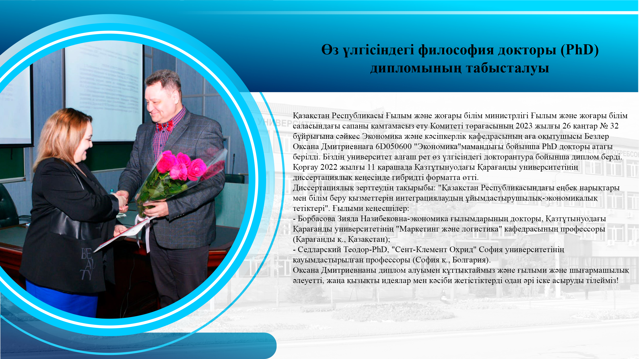 Қазтұтынуодағы ҚарУ-дің өзіндік үлгідегі дипломдарының бекітілген нысандары