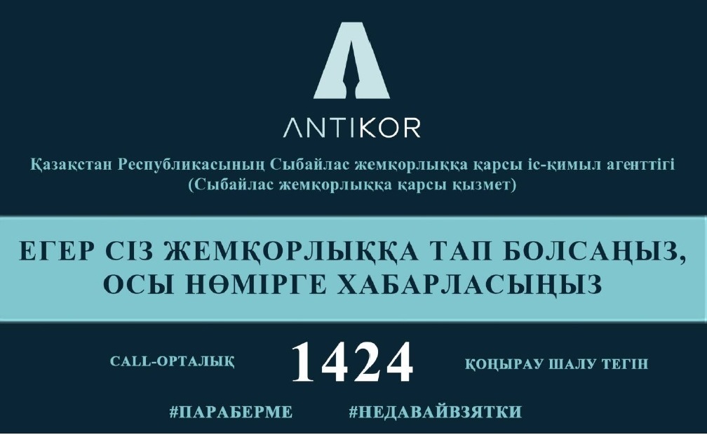 Әдеп және сыбайлас жемқорлыққа қарсы іс-қимыл жөніндегі " жедел желі": +7 708 6875401